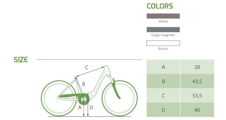 Ruote da 28” e accesso il più basso possibile per la bici da donna con il motore centrale con una linea classica e particolarmente apprezzata.